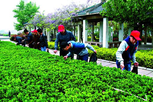 4月12日,淇滨区组织50余名青年志愿者在新世纪广场及周边开展活动,他们或捡拾垃圾,或向商户和市民发放“门前三包”责任制、“参与城市管理倡议书”等宣传材料,倡导规范经营,做文明市民。图为志愿者在捡拾垃圾。