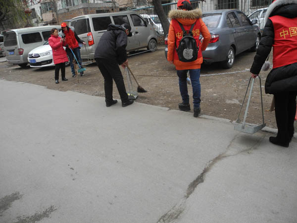 志愿者们不怕寒冷,拿着冰凉的灰斗和笤帚,清理掉遗落在角落里的垃圾,从冰冷的地面上捡起被丢弃的短短烟蒂和片片废纸。志愿者的行动影响了路过的居民,他们也自觉地加入到捡拾烟蒂和清理垃圾的行列中。
