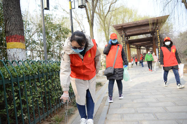 活动过程中,巾帼志愿者身穿志愿者服装,戴上口罩,手里拿着塑料袋、夹子等工具,按照活动任务分工,精心的做好垃圾清理工作。