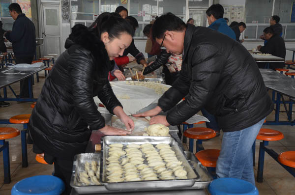 12月22日是我国传统节日冬至,为了让各位老师在紧张忙碌的工作中度过一个快乐而温馨的节日,鹤壁二中在餐厅组织全体教职工举行冬至包饺子活动。