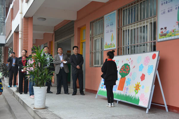 下午三时许,观摩团来到了淇滨区庞村明德小学,观看了学校的社团活动、校园文化及学校近一年来学校工作图片展。见证了学校由“千淘万漉虽辛苦”到“吹尽狂沙始到金”的发展历程;在室外观看腰鼓、太极拳、足球、“2+1”特色跳绳等六个学生社团,到室内观看了儿童智能创意绘画、手工、书法、葫芦丝等六个社团活动。在观看社团活动的同时,参观了校园环境及学校近一年来学校工作图片展,感触到校园内每一处角落弥漫着健康、乐观、激扬、快乐、进取的才艺展示和浓郁的特色活动氛围;特别是在“小导游”六(1)班学生齐琪的讲解、引导下及各社团“小讲解员”的解说,引起了观摩团成员的一致好评,他们彬彬有礼、乐观大方、语言讲解观摩团给与了阵阵掌声。