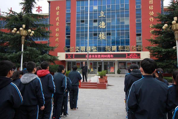 10月24日,淇滨区第一中学在美丽、和谐的立德楼广场,隆重举行“纪念长征胜利80周年大会”。全体师生参加此次盛会。