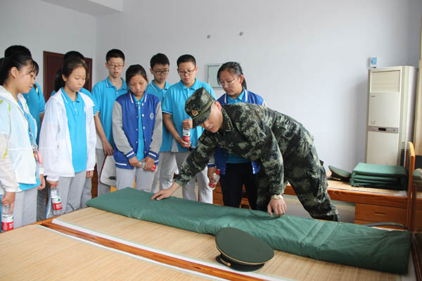 抵达武警支队后,庄严肃穆的支队大楼,洁净整齐的环境使同学们立刻产生了浓厚的兴趣。学生在战士的带领下刚来到训练场,就被武警官兵的操练所吸引。官兵精彩的演示,赢得了同学们的阵阵掌声和赞叹声。接下来,同学们走近武警士兵的寝室,干净整齐的床铺,“豆腐块”状的被子,方向一致的牙刷,叠放整齐的毛巾,无不展示着严明的纪律,赢得同学们的连连赞叹。