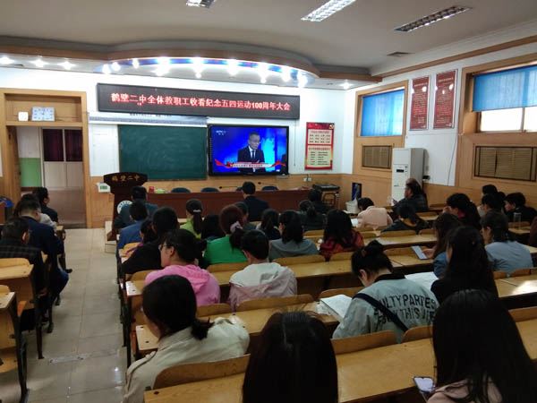 4月30日上午10点30分,纪念五四运动100周年大会在人民大会堂隆重举行,中共中央总书记、国家主席、中央军委主席习近平出席大会并发表重要讲话。鹤壁二中党支部组织全体教职工收看了大会盛况。