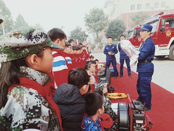 11月9日,在第29个“全国消防日”里,鹤壁市湘江小学“国旗中队”、“靳月英中队”的少先队员代表和部分大走进淇滨区漓江路消防支队,开展“我是小小消防员”活动。