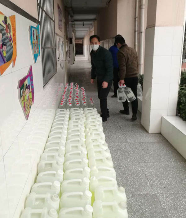 此次捐赠物质有:84消毒液1.5吨、双氧水消毒液0.5吨、口罩1000只。这一桶桶消毒液,一只只口罩承载着元昊集团广大员工满满的爱心,让学校疫情防控工作更加有力进行,助于打赢疫情防控阻击战。