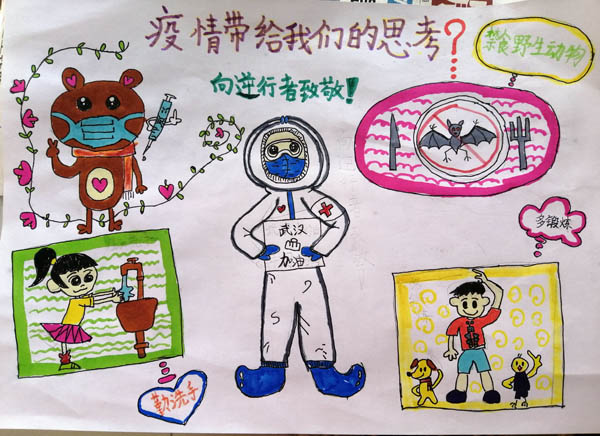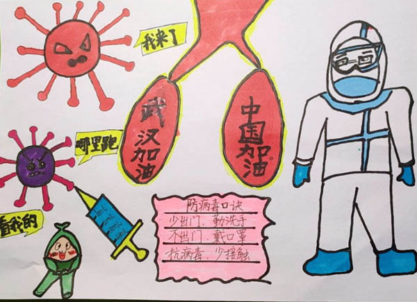 2020开年伊始,新冠状病毒疫情突然降临,注定这是个难忘的新年,难忘的寒假。而在疫情中逆行的医护人员、基层防疫工作者、志愿者,无一不令我们感动。市桃源小学的学生们以“疫情教给我们什么”为主题创作了一幅幅画作。