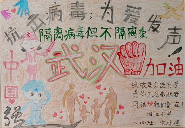 近日,鹤壁市湘江小学特开展童心共绘·携手抗疫美术作品网络展评活动,号召全校学生为战胜疫情鼓,传递艺术力量,为时代画像、为时代明德,心相连心、手相牵,众志成城,为夺取防控疫情的最后胜利贡献力量!